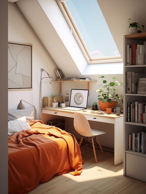 - Оптимизируйте использование пространства. Располагайте мебель таким образом, чтобы максимально использовать свободное пространство. Например, можно установить полки или шкафы под наклонными стенами.