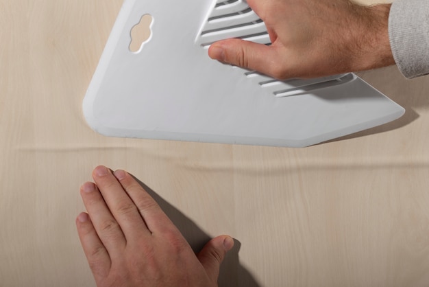 Шаг 4: Очистите кнопку слива от возможных загрязнений. Возьмите одноразовую салфетку или мягкую тряпку, смочите ее водой и тщательно протрите кнопку. Если кнопка не отделяется от механизма, оберните тряпку вокруг нее и внимательно протрите поверхность.