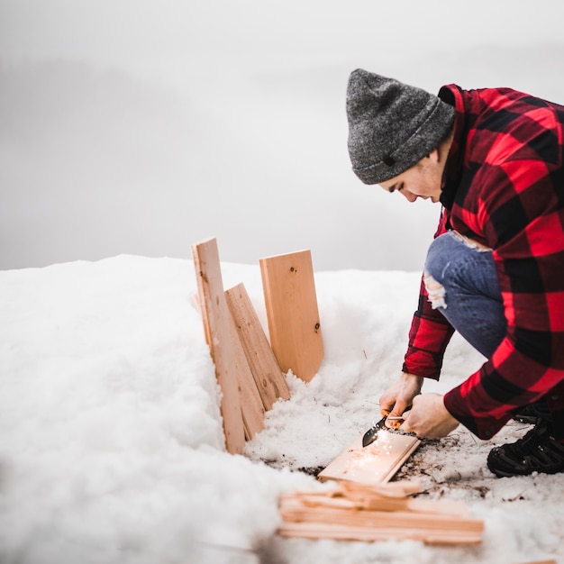 - Очистите бревно от коры и лишних веточек, используя топорик или специальный нож. Это поможет придать кровати более аккуратный вид и защитит ее от нежелательных повреждений.