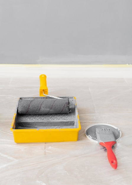 - Теперь можно приступить к нанесению краски. Выберите краску, предназначенную для пола, и следуйте указаниям на упаковке. Обычно краску можно наносить кистью или валиком. Обращайте внимание на равномерность нанесения и избегайте образования сколов и капель.